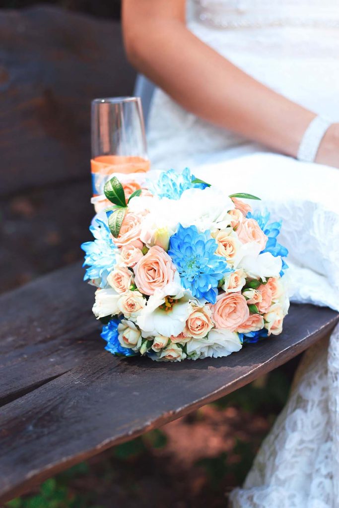 É provável que você queira que algo no traje do noivo esteja relacionado a cor pantone de 2020. Para isso, escolha itens que componham o look dele, que por si só já é diferente dos demais. Dessa maneira peça que ele utilize um lenço de bolso na cor escolhida, ou então entregue a ele uma flor azul do seu buque. Isso fará com que ele também participe do conjunto como um todo, e todos os detalhes terão o encaixe e a combinação perfeita.